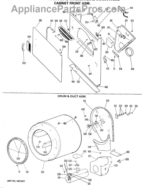 Parts for Ge DDE9300LBL: 03 - Cabinet Front Asm. Parts
