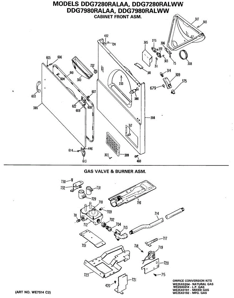 Meters gas flow to the dryer burner. Replace if damaged, clogged, or when converting between natural gas and LP. Installs at the burner assembly.