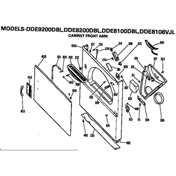 Parts for Ge DDE8200DBL: Cabinet Front Assembly Parts