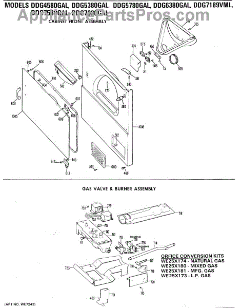 Parts for Ge DDG5380GAL: 05 - Cabinet Front Assembly Parts
