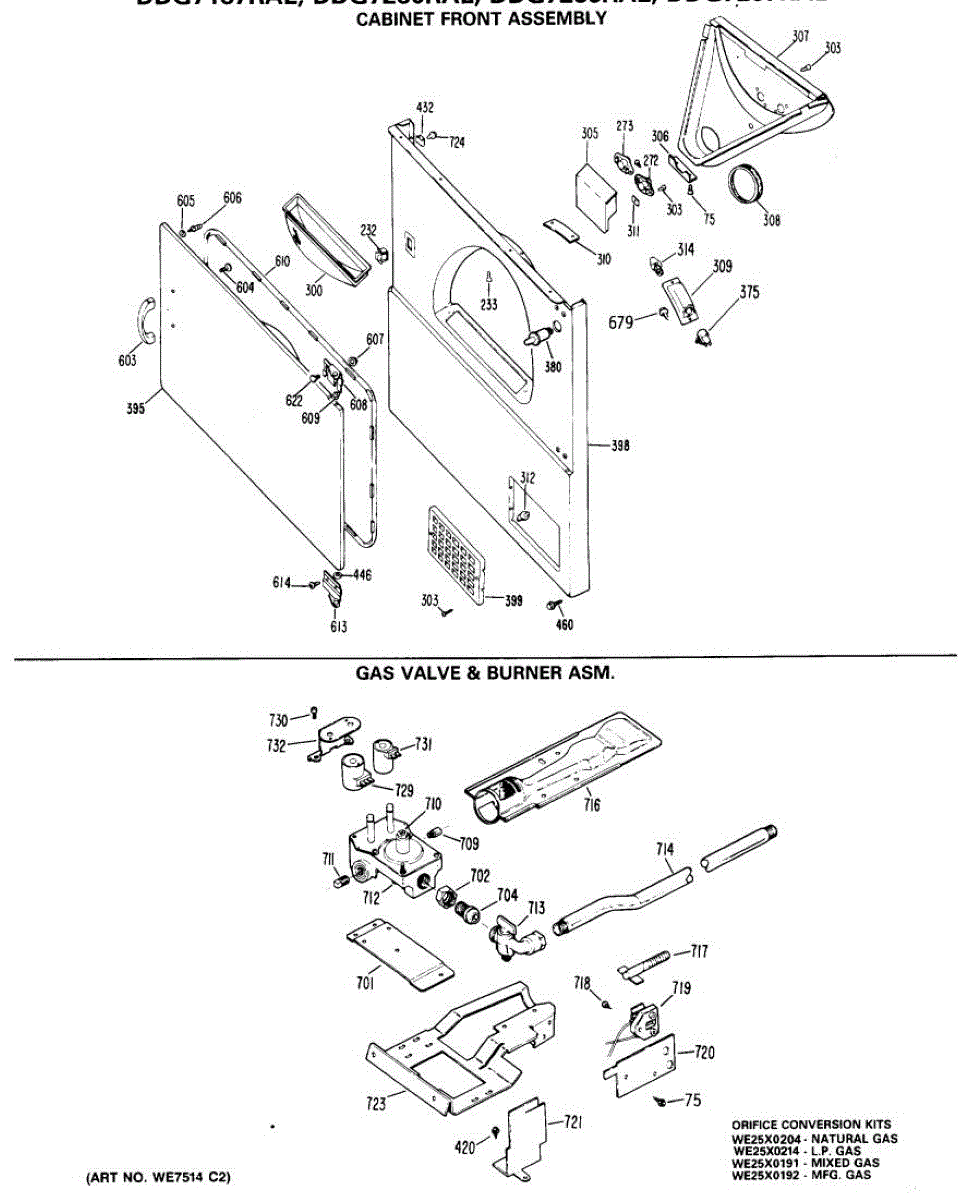 Meters gas flow to the dryer burner. Replace if damaged, clogged, or when converting between natural gas and LP. Installs at the burner assembly.