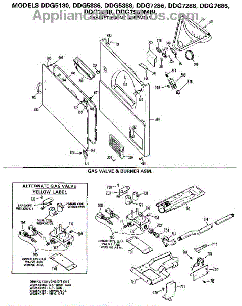 Parts for Ge DDG7286: Cabinet Front And Burner Parts