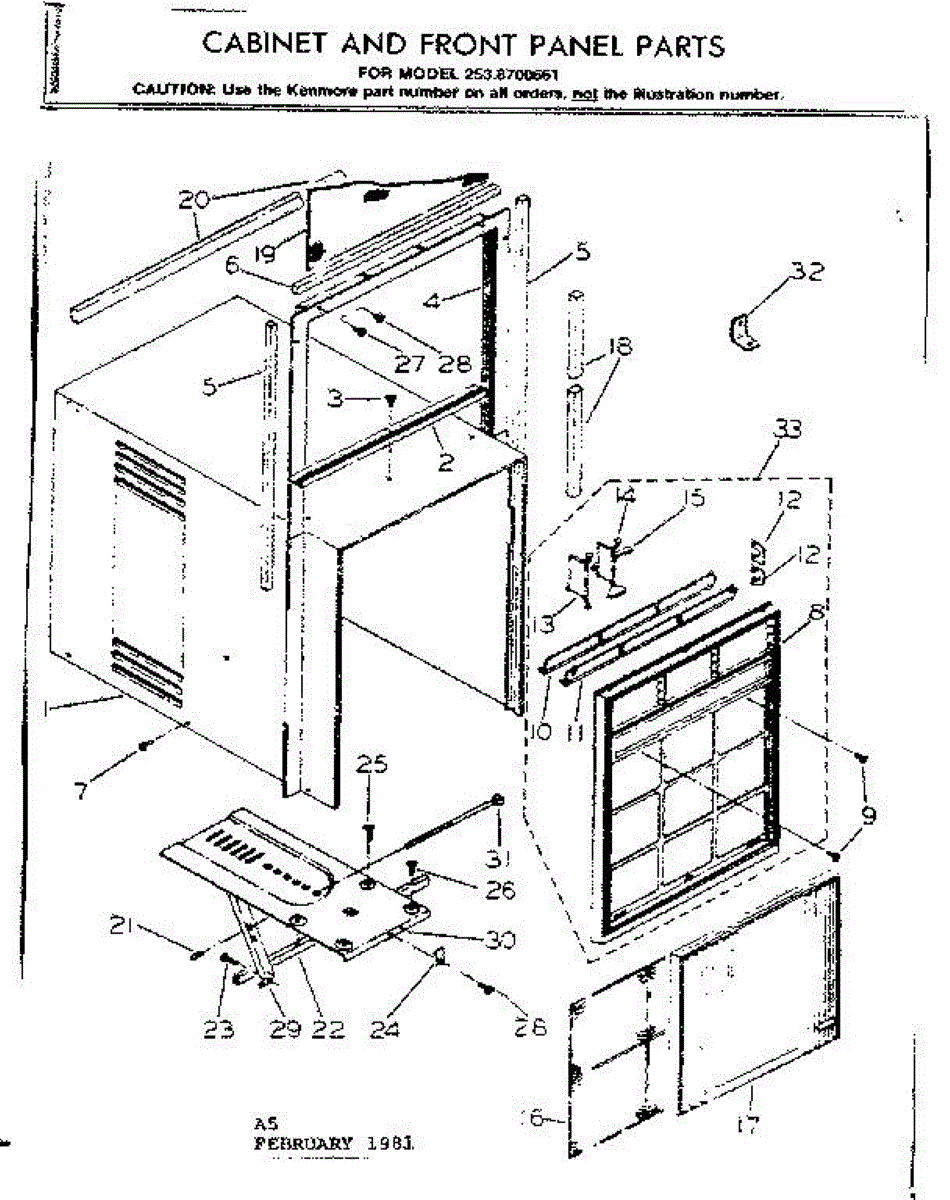 Parts for Kenmore 253.8700661 (2538700661, 253 8700661): Cabinet And Front Panel Parts