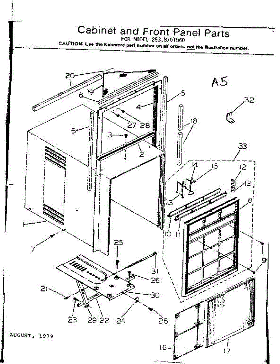 Parts for Kenmore 253.8701060 (2538701060, 253 8701060): Cabinet And Front Panel Parts