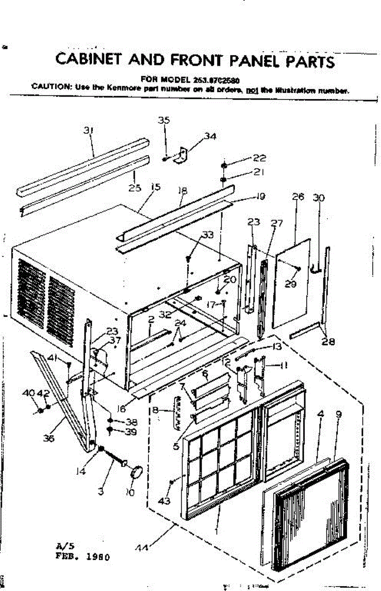 Parts for Kenmore 253.8702580 (2538702580, 253 8702580): Cabinet And Front Panel Parts