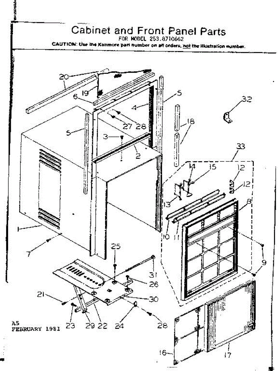 Parts for Kenmore 253.8710662 (2538710662, 253 8710662): Cabinet And Front Panel Parts