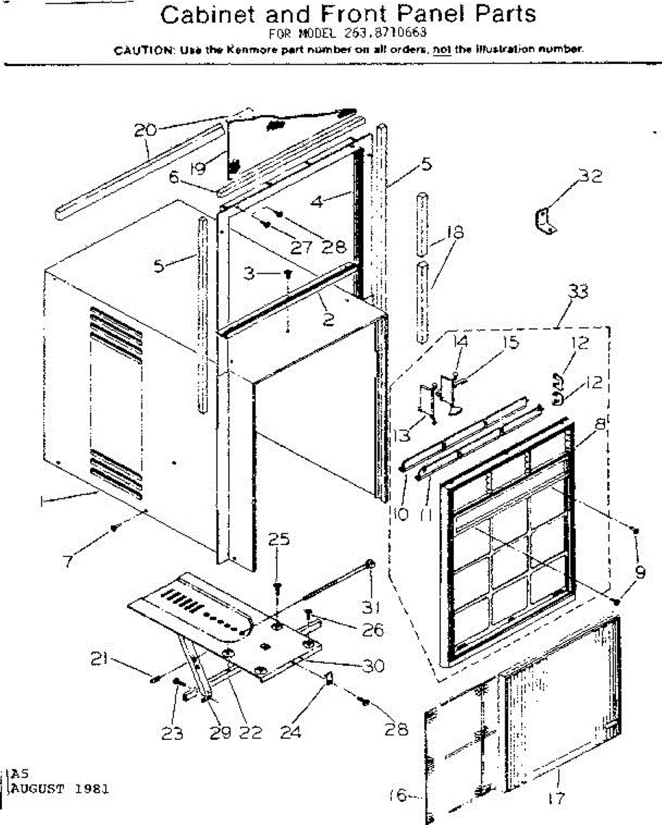 Parts for Kenmore 253.8710663 (2538710663, 253 8710663): Cabinet & Front Panel Parts