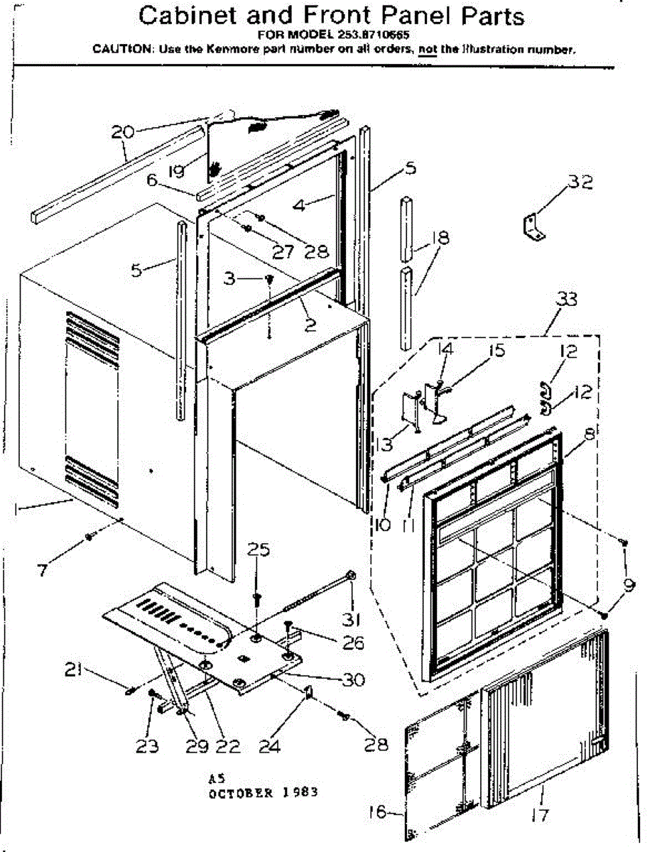 Parts for Kenmore 253.8710665 (2538710665, 253 8710665): Cabinet And Front Panel Parts