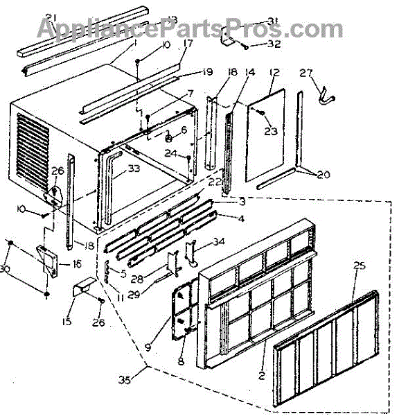 Parts for Kenmore 253.8710950 (2538710950, 253 8710950): Cabinet And Front Panel Parts