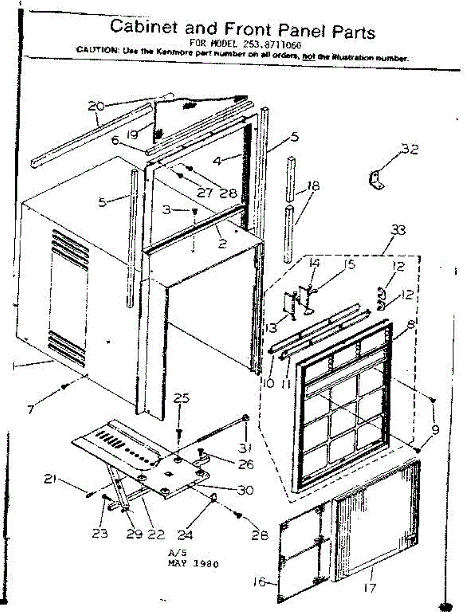 Parts for Kenmore 253.8711060 (2538711060, 253 8711060): Cabinet And Front Panel Parts