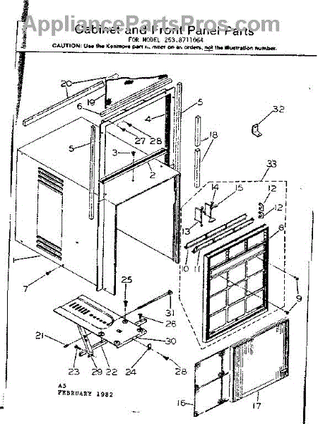 Parts for Kenmore 253.8711064 (2538711064, 253 8711064): Cabinet & Front Panel Parts
