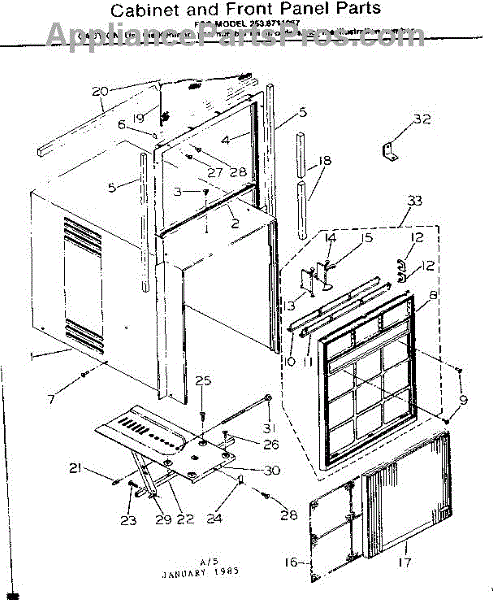 Parts for Kenmore 253.8711067 (2538711067, 253 8711067): Cabinet And Front Panel Parts