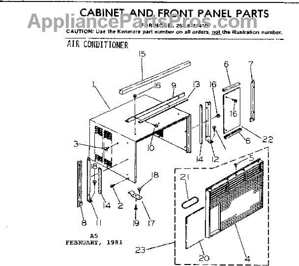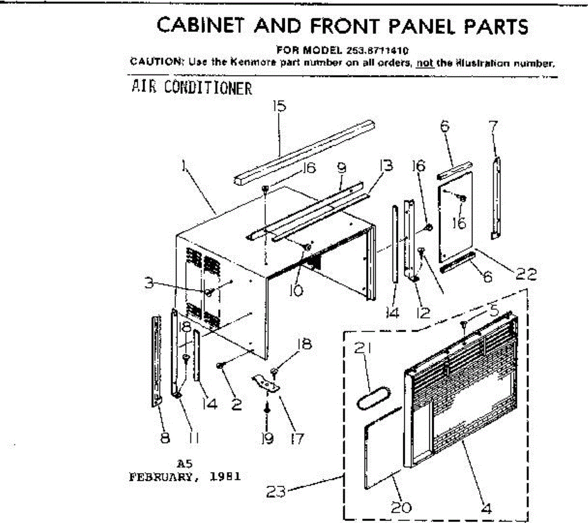 Parts for Kenmore 253.8711410 (2538711410, 253 8711410): Cabinet & Front Panel Parts