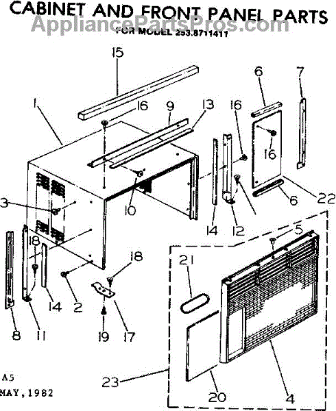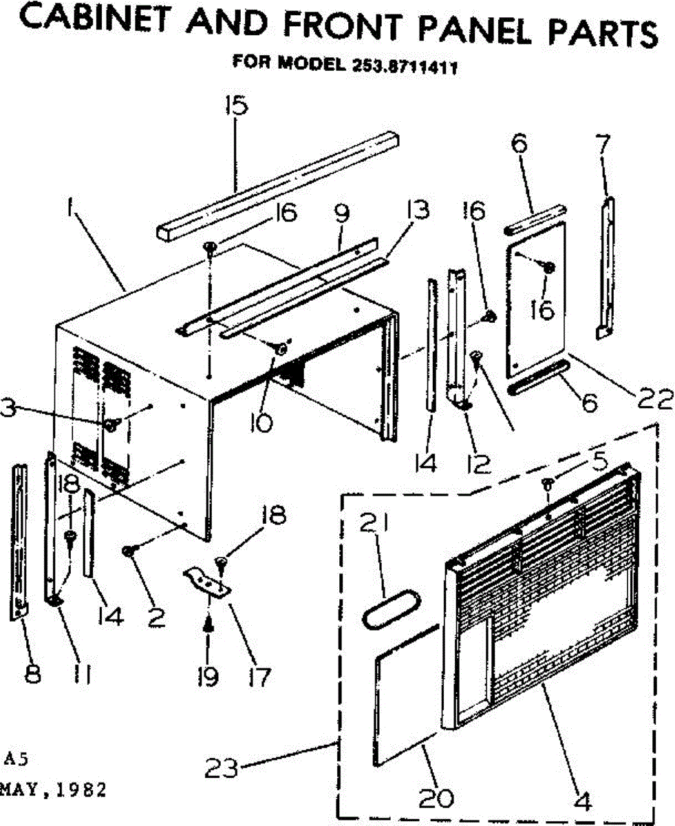 Parts for Kenmore 253.8711411 (2538711411, 253 8711411): Cabinet And Front Panel Parts
