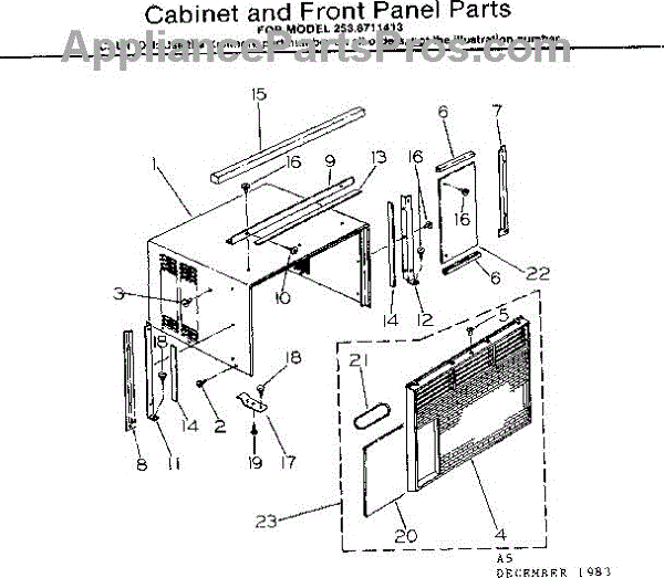 Parts for Kenmore 253.8711413 (2538711413, 253 8711413): Cabinet & Front Panel Parts