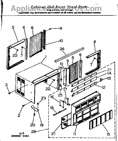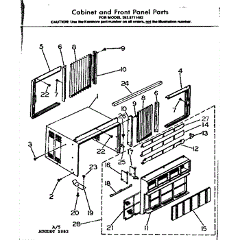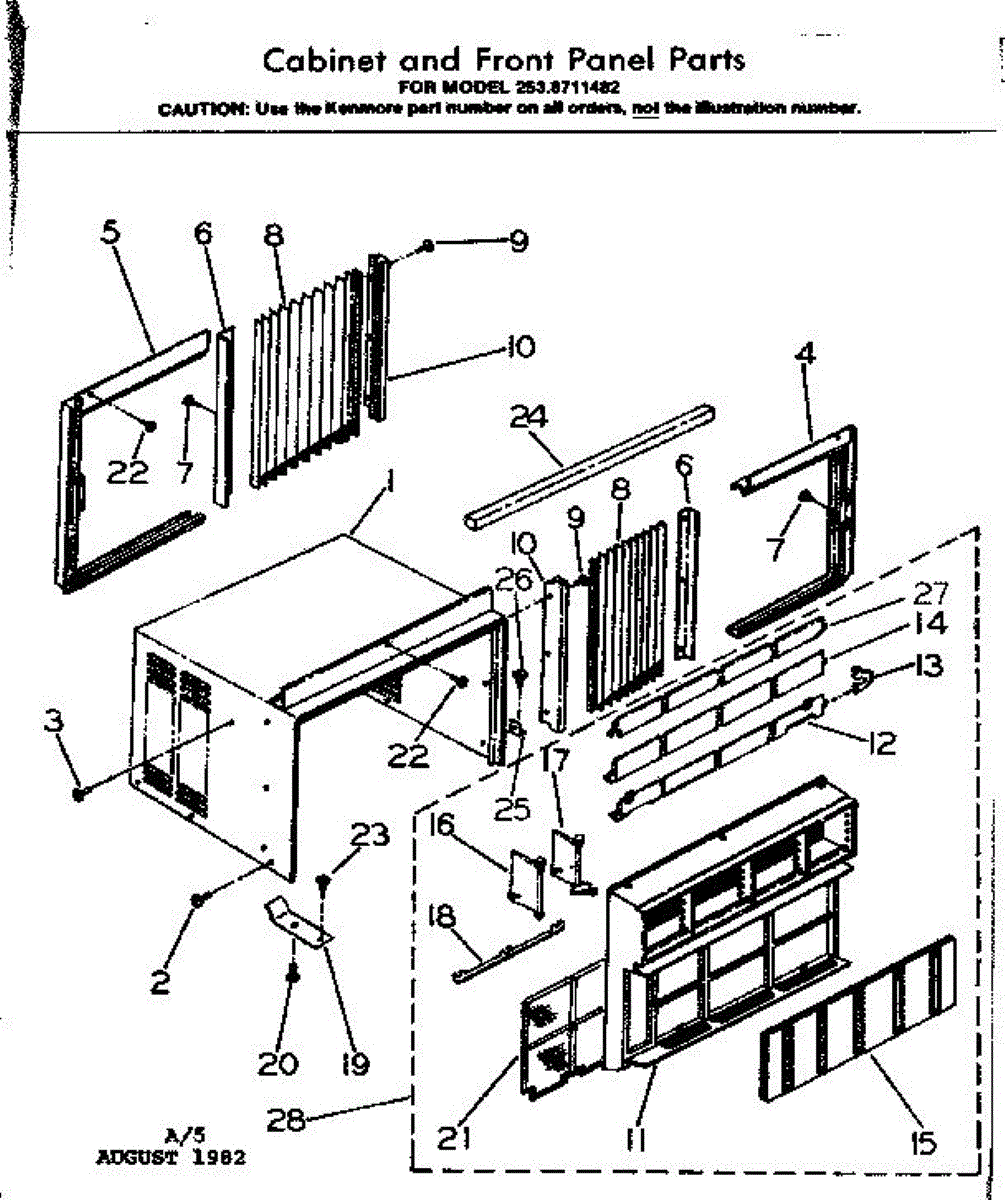 Parts for Kenmore 253.8711482 (2538711482, 253 8711482): Cabinet & Front Panel Parts