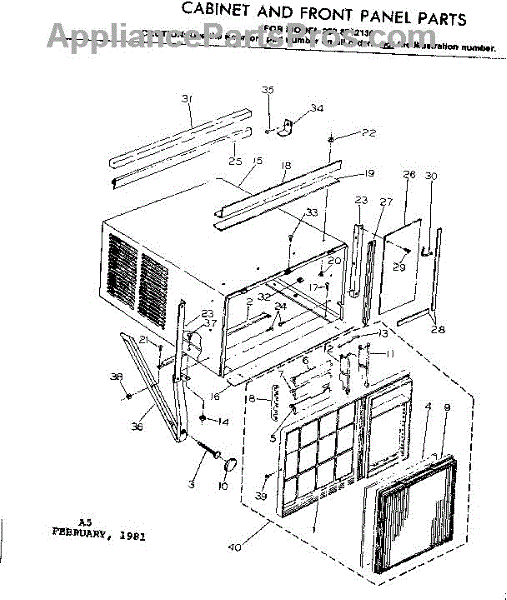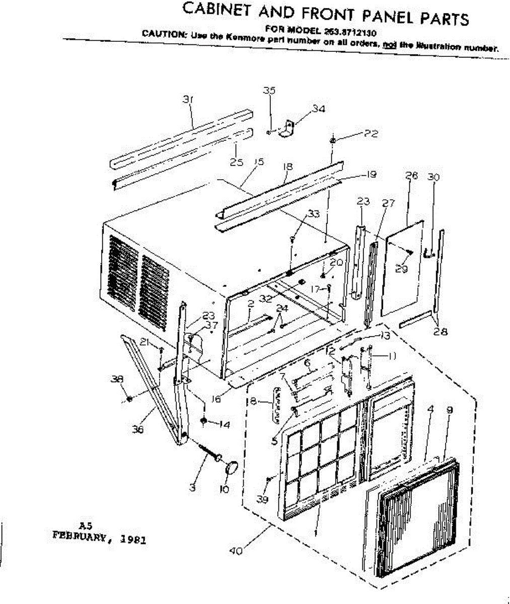 Parts for Kenmore 253.8712130 (2538712130, 253 8712130): Cabinet & Front Panel Parts
