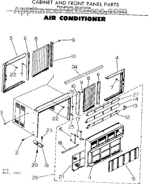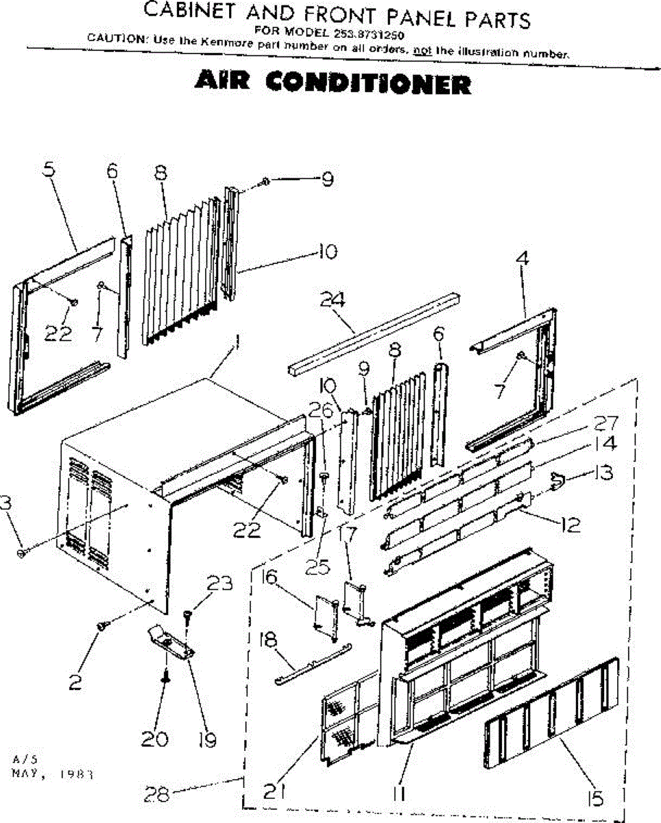 Parts for Kenmore 253.8731250 (2538731250, 253 8731250): Cabinet And Front Panel Parts