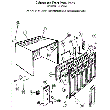 Parts for Kenmore 253.9720840 (2539720840, 253 9720840): Cabinet And Front Panel Parts