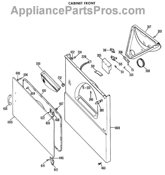 Parts for Ge DDE5211GAL: 03 - Cabinet Front Parts