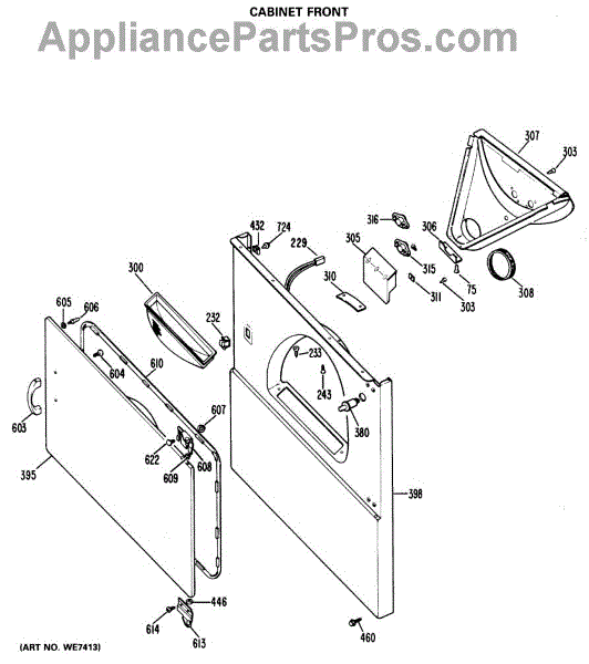 Parts for Ge DDE6608LAL: 03 - Cabinet Front Parts