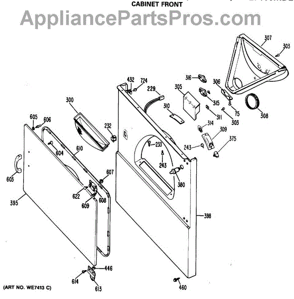 The Door Latch is an OEM part for GE dryers. This part ensures the dryer door stays securely closed during operation, activating the safety switch to allow the dryer to operate. The latch mechanism engages with the door strike to lock the door, preventing it from opening while the dryer is running, which is essential for both safety and proper functioning of the appliance.