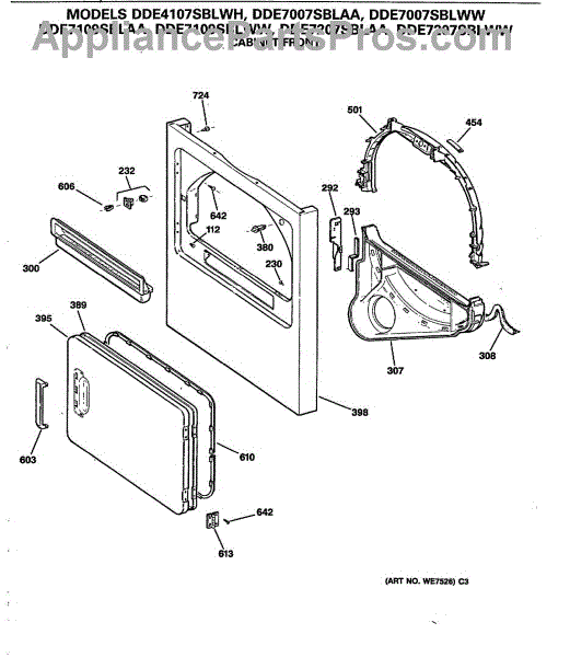The Handle Door is an OEM part for GE dryers. This door handle allows for easy opening and closing of the dryer door, providing a secure grip to access the drum.