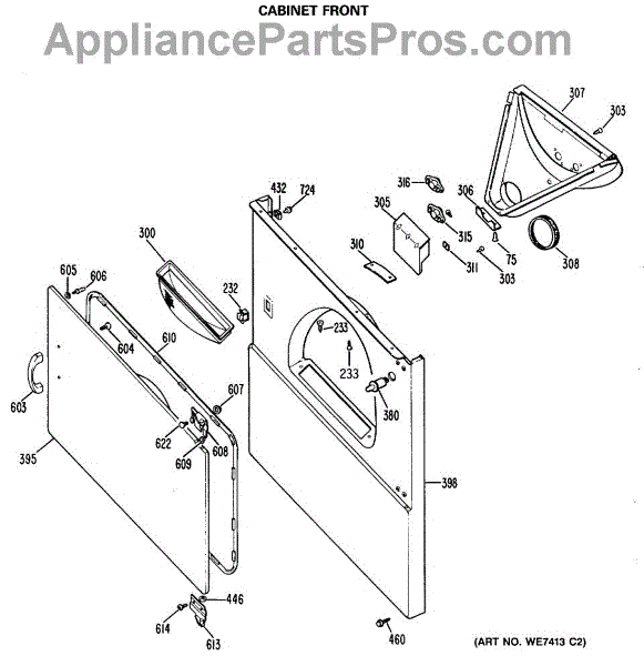 The Door Latch is an OEM part for GE dryers. This part ensures the dryer door stays securely closed during operation, activating the safety switch to allow the dryer to operate. The latch mechanism engages with the door strike to lock the door, preventing it from opening while the dryer is running, which is essential for both safety and proper functioning of the appliance.