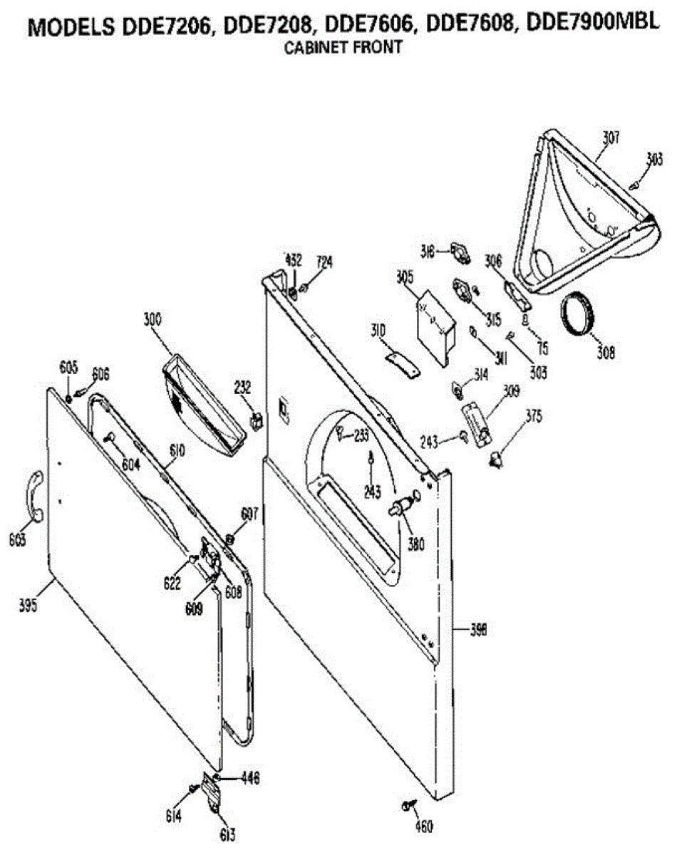 Parts for Ge DDE7608: Cabinet Front Parts
