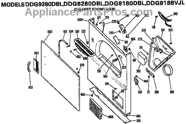 Parts for Ge DDG8280DBL: Cabinet Front Parts