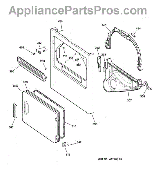 Causes of a bad front drum support bearing glide can include normal wear and tear over time, excessive load weights, or debris accumulation that can cause friction and damage. When the glide wears out, it can lead to increased noise levels and potential damage to other dryer components.