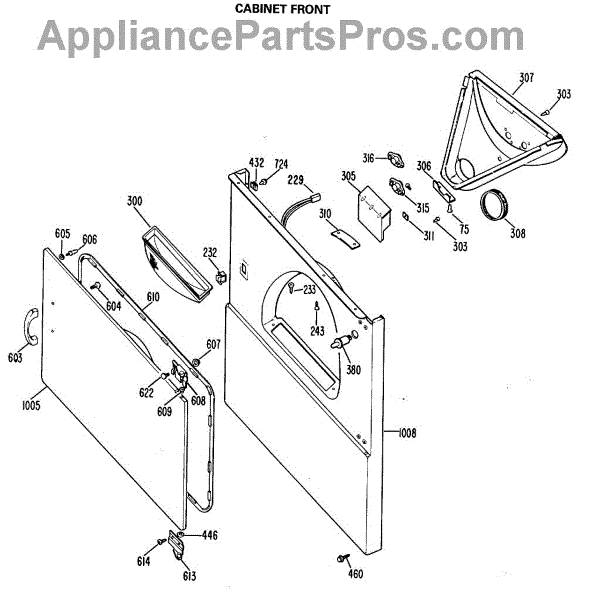 Parts for Ge DRB2455KAL: 03 - Cabinet Front Parts