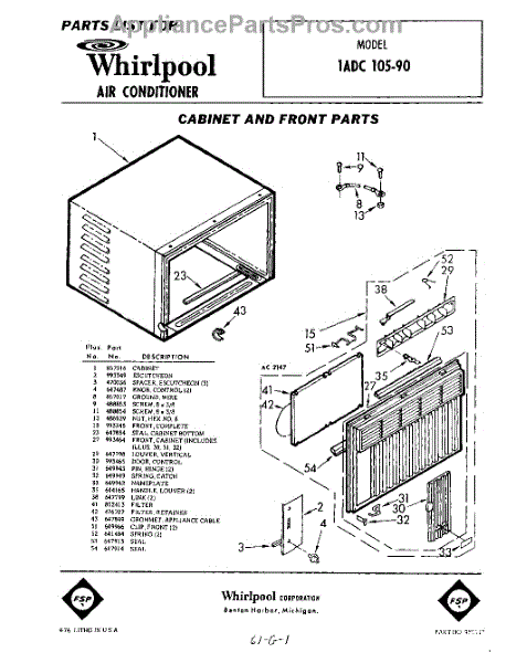 Parts for Whirlpool 1ADC10590: 01 - Cabinet And Front Parts
