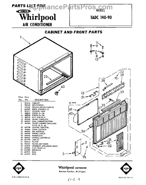 Parts for Whirlpool 1ADC14090: 01 - Cabinet And Front Parts