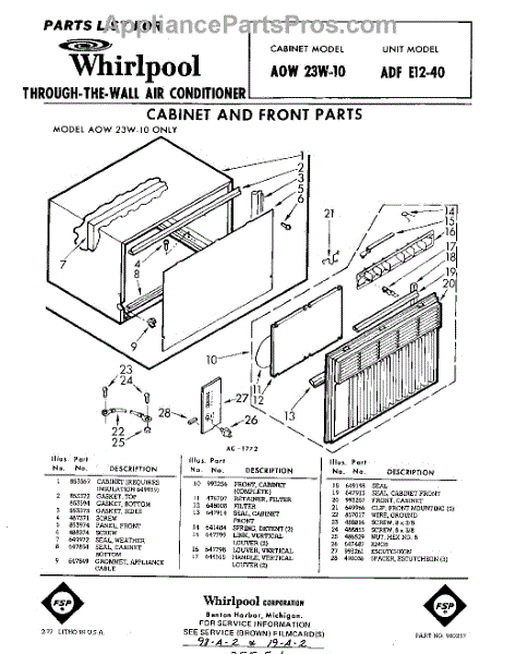 Parts for Whirlpool ADFE1240: 01 - Cabinet And Front Parts