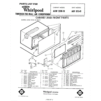 Parts for Whirlpool ADFE1241: 01 - Cabinet And Front Parts