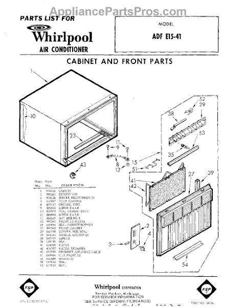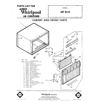 Parts for Whirlpool ADFE1541: 01 - Cabinet And Front Parts
