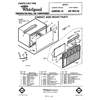Parts for Whirlpool ADFW0940: 01 - Cabinet And Front Parts