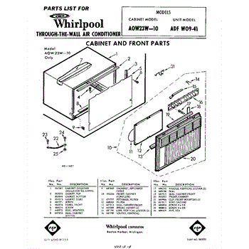 Parts for Whirlpool ADFW0941: 01 - Cabinet And Front Parts
