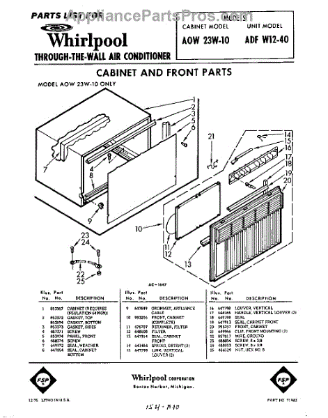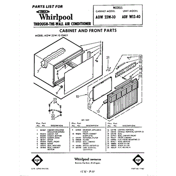 Parts for Whirlpool ADFW1240: 01 - Cabinet And Front Parts