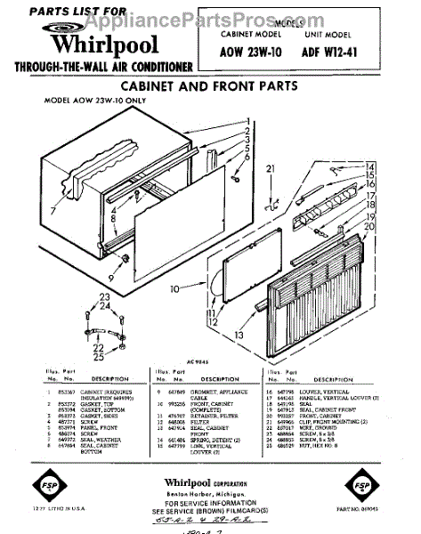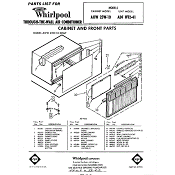 Parts for Whirlpool ADFW1241: 01 - Cabinet And Front Parts