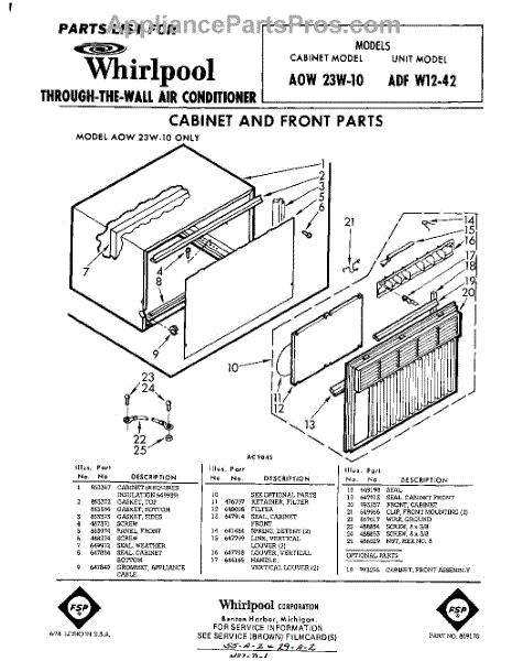 Parts for Whirlpool ADFW1242: 01 - Cabinet And Front Parts