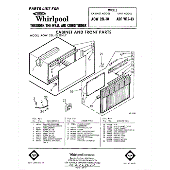Parts for Whirlpool ADFW1543: 01 - Cabinet And Front Parts