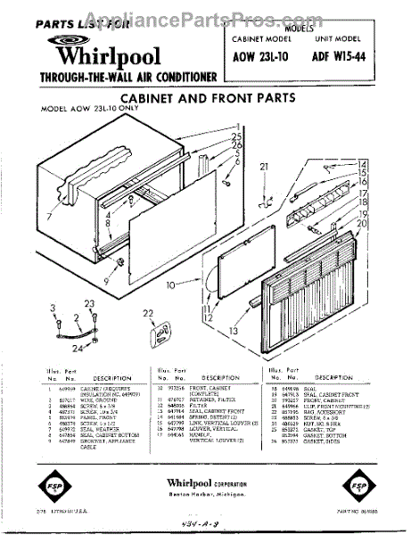 Parts for Whirlpool ADFW1544: 01 - Cabinet And Front Parts