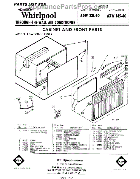 Parts for Whirlpool ADW23L10: 01 - Cabinet And Front Parts