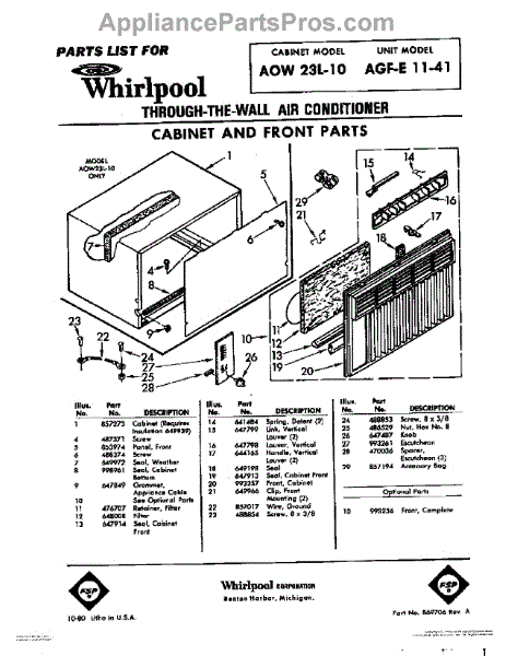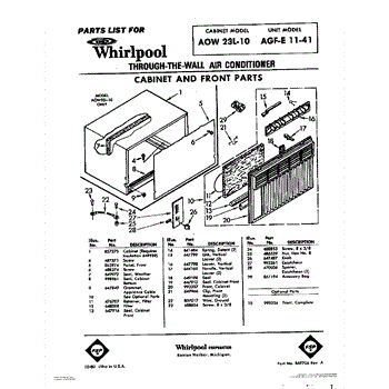 Parts for Whirlpool AGFE1141: 01 - Cabinet And Front Parts