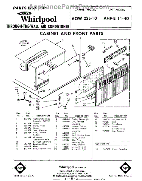 Whirlpool Air Conditioner Parts