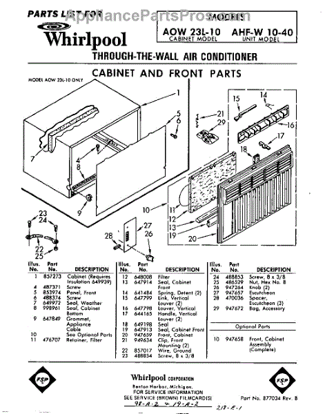 Whirlpool Air Conditioner Parts