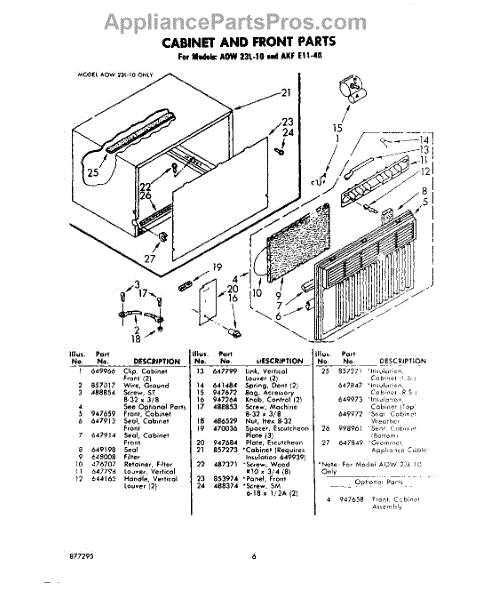 Parts for Whirlpool AKFE1140: 06 - Cabinet And Front Parts
