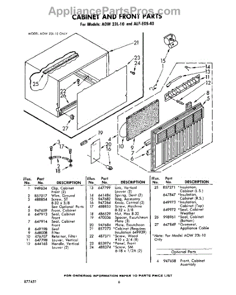 Parts for Whirlpool ALFE0940: 06 - Cabinet And Front Parts